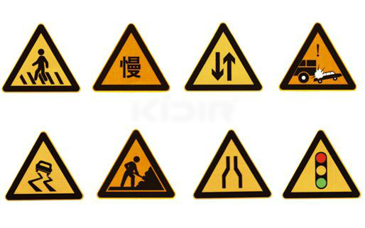 警告标志用來警告車(chē)輛駕駛人、行人前方有危險的标志,顔色爲黃底、黑邊(biān)、黑圖形,形狀爲等邊(biān)三角形或矩形,三角形的頂角朝上。一般由标志底闆、标志面、立柱、緊固件、基礎等幾部分組成 底闆:鍍鋅闆、鋁闆、不鏽鋼闆,有時又用鋁塑闆。