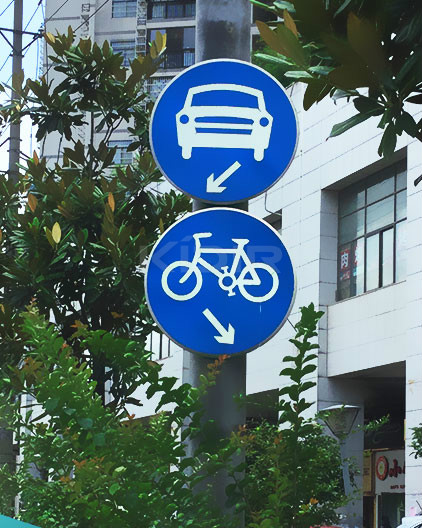 指示标志表示指示車(chē)輛、行人進行的含義,道路使用者應遵循,除個别标志外,爲藍底、白圖形,形狀多爲圓形、長(zhǎng)方形和正方形。一般由标志底闆、标志面、立柱、緊固件、基礎等幾部分組成 底闆:鍍鋅闆、鋁闆、不鏽鋼闆,有時又用鋁塑闆。