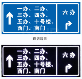 面闆式主動發光标志牌,採(cǎi)用混光定向技術的LED光源闆布置於(yú)标志箱體,向可透光型反光面闆背面均勻投射,面闆正面主動發光高清晰度顯示出與逆反射材料顔色一緻的文字圖形信息的交通标志。其中,半透式主動發光标志牌,僅有标志的字符、圖形輪廓等内容透光的主動發光交通标志。