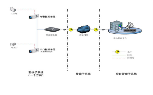 高清檢測(cè)卡口式闖紅燈自動抓拍系統主要由一體化高清闖紅燈抓拍單元、一體化高清卡口抓拍單元、LED頻閃補(bǔ)光燈、曝光燈、嵌入式終端服務器、機箱組件、傳輸組件等組成。